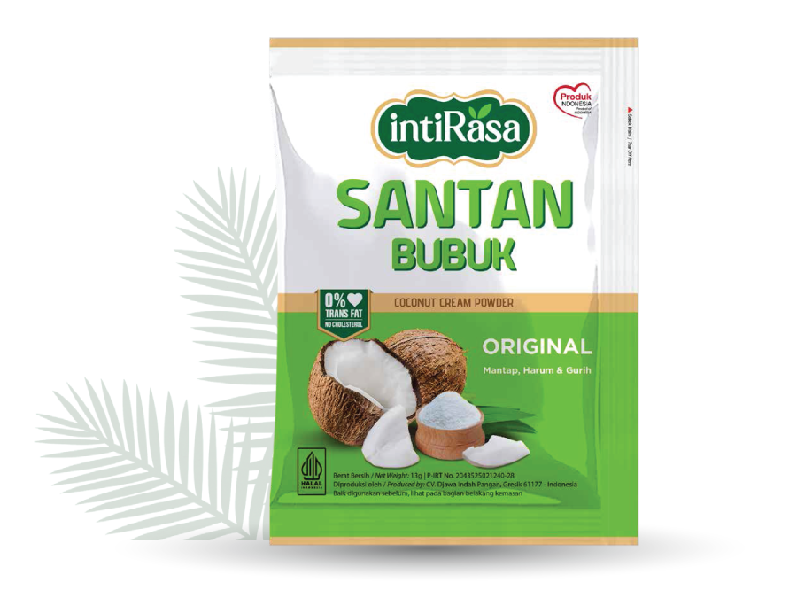 intiRasa santan bubuk dibuat dari daging kelapa pilihan, sehingga meng-